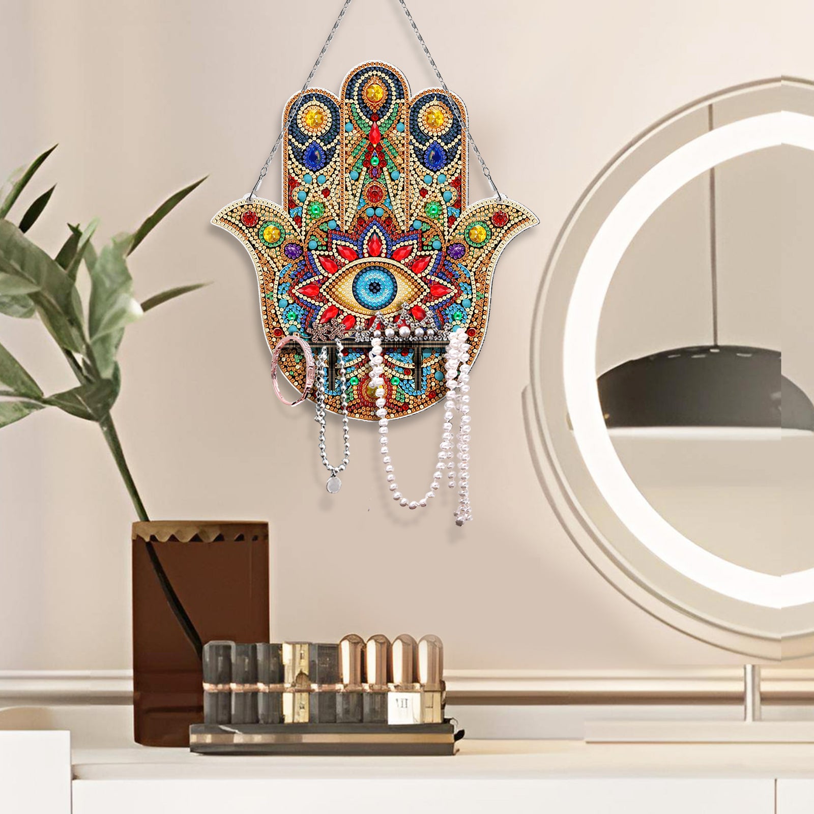 Pintura con Diamantes Colgante Mano de Fátima